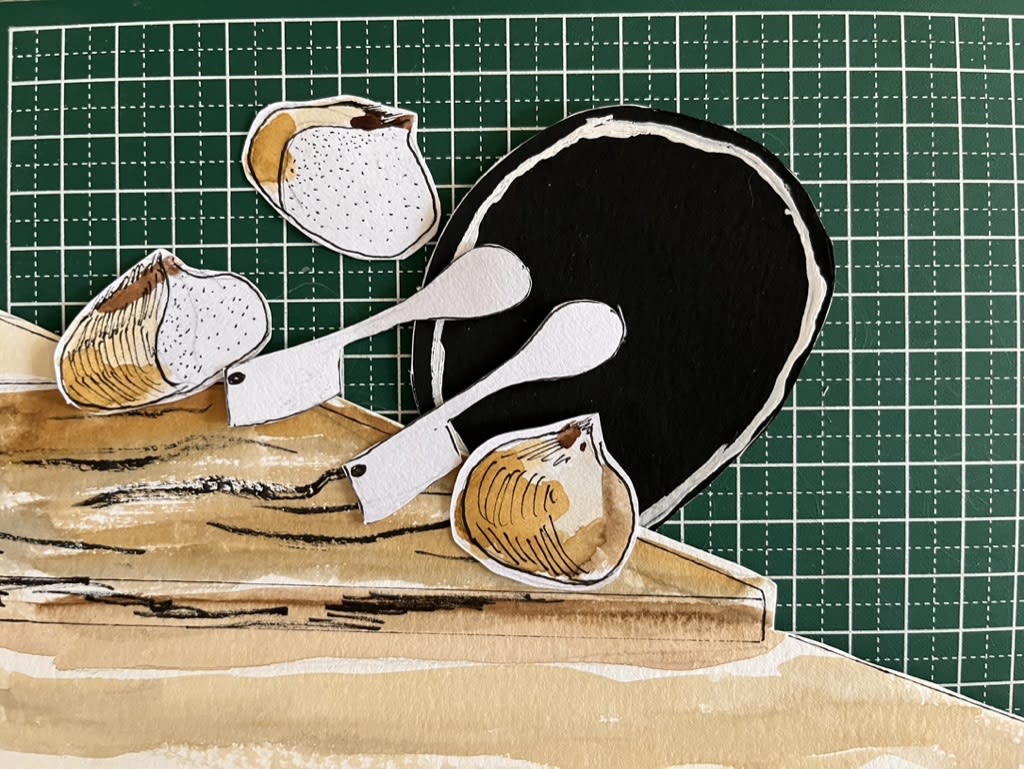 I used charcoal, gouache, ink, and watercolor. It’s largely cut-out and replacement animation, but I wanted the egg-drop scene to be very dramatic, so I opted for hand-drawn slides. I was nervous how the smear frames would pan out in motion, but I guess I’ve seen jiggly eggs drop so many times that I should have been confident.